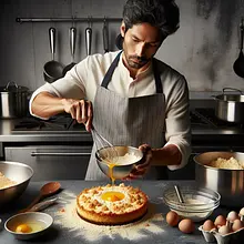 The inspiration is the traditional Marciński cheesecake, but this is my own version: a crumbly, buttery base, a creamy cheese filling with the addition of soft marzipan and mascarpone, and a delicate orange-almond glaze. The cake combines the sweetness of marzipan with the fresh, slightly tangy notes of orange zest and juice. It looks elegant — a golden base, a light, slightly browned surface of the cheesecake, and a glossy glaze decorated with almond flakes and candied peel. Perfect for holiday tables, family celebrations, or as a stunning dessert for "special occasions." It has a creamy, dense consistency, not too sweet, with a pleasant texture from the submerged marzipan.