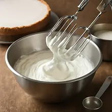 Whip the cream: pour 300 ml of chilled 30% cream into a clean, cold bowl and whip on medium speed with a mixer until stiff but smooth peaks form (3–4 minutes). Stop whipping when the cream holds its shape and doesn't drip from the whisk.