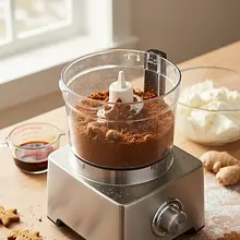 Place the gingerbread cookies in a food processor or a blender and blend them into a fine powder, resembling wet sand. If you don't have a food processor, put the cookies in a sturdy ziplock bag and crush them thoroughly with a rolling pin.