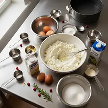 This cheesecake is the essence of the holidays captured in the form of an elegant dessert. Its base is a crunchy and intensely spiced crust made from crushed gingerbread, which perfectly contrasts with the velvety, creamy, and rich cheese filling. A delicate hint of orange in the cheesecake adds freshness and a festive aroma. The whole is topped with a bold, ruby sauce made from sour cranberries, which cuts through the sweetness and introduces a refreshing note. The cheesecake looks exceptionally impressive, especially when decorated with 'frosted' sprigs of rosemary and fresh cranberries, creating a miniature Advent wreath on its surface. It is a dessert that not only delights with its flavor but also serves as a beautiful decoration on the Christmas table. Perfect to serve after a festive dinner, accompanied by aromatic coffee or winter tea.