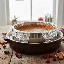 After 60 minutes, gently move the pan. The cheesecake is ready when its edges are set and stable, while the center (a circle with a diameter of about 10 cm) is still slightly wobbly and gelatinous. Turn off the oven, slightly ajar the door (you can place a wooden spoon in it to keep it from closing), and leave the cheesecake in the cooling oven for at least 1 hour. Then remove it, take off the aluminum foil, and let it cool completely on the countertop. Only after it has completely cooled should you place the cheesecake in the refrigerator for a minimum of 6 hours, preferably overnight.