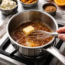 Preheat the oven to 200°C (top-bottom). Cut the pumpkin in half, scoop out the seeds with a spoon, and cut the flesh into similarly sized pieces (about 3-4 cm). If you are using hokkaido, you do not need to peel the skin; for other varieties, peel them. Arrange the pumpkin pieces on a baking sheet lined with parchment paper, brush with 10 g of melted butter, and bake for 30–35 minutes until the pumpkin is soft (insert a knife – it should go in smoothly).