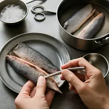 Soak the salted herring fillets: if you received whole fillets, check for bones and remove them with tweezers. Cut the fillets into pieces about 3–4 cm wide. Place the cut fillets in a large bowl and cover with cold water (about 500 ml). Put the bowl in the refrigerator and soak for 2 hours, changing the water every 30 minutes. After 2 hours, taste a small piece — it should be less salty but still flavorful; if it is too salty, continue soaking for another 30–60 minutes.