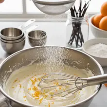 Whip the cream. In a bowl with mascarpone and cream, add the sifted powdered sugar and grated orange zest. If using, pour in the orange liqueur now. Using a mixer with whisk attachments, start whipping on low speed, gradually increasing to medium. Whip for 2-3 minutes until the cream becomes thick, stiff, and fluffy. Be careful not to 'overwhip' it (whip for too long), as it may curdle.