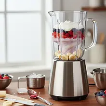Zamknij szczelnie pokrywę blendera. Rozpocznij miksowanie na niskich obrotach przez około 15 sekund, aby wstępnie rozdrobnić składniki. Następnie zwiększ prędkość do maksymalnej i miksuj przez kolejne 60-90 sekund, aż smoothie uzyska idealnie gładką, kremową i jednolitą konsystencję. Nie powinno być w nim żadnych grudek ani kawałków owoców.