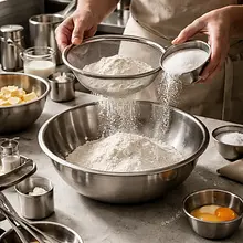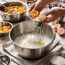Prepare the ingredients for the shortcrust pastry: sift 300 g of flour into a large bowl, add 3 g of salt and 80 g of sugar (from the total amount). Cut 230 g of cold butter into small pieces (about 1 cm). Add the butter to the flour and quickly rub it in with your fingers or use a pastry cutter until the mixture resembles coarse crumbs (size of semolina to peas). Make a well, crack in one whole egg (60 g) and quickly knead by hand or with a spatula just until the ingredients come together; the dough should hold together but not be sticky. If it is too dry, add 10–15 ml of cold water. Form into a flat disk, wrap in plastic wrap and refrigerate for at least 30 minutes - the dough will firm up, making it easier to roll out.