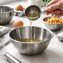 Rinse the cranberries under cold water and drain. In a small 1-liter saucepan, place the cranberries (100 g), add 50 g of brown sugar and 30 ml of water (about 30 g). Set the saucepan over medium heat. When it starts to gently boil (small bubbles), reduce the heat and cook for 6-8 minutes, stirring with a wooden spoon – the cranberries should burst, and the mixture should become thicker and slightly glossy. After cooking, remove from heat and let sit for 3 minutes, then strain through a fine sieve, pressing with a spoon to obtain a smooth syrup. Set aside to cool slightly (to room temperature).