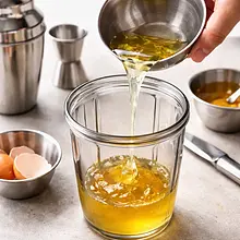 In a small, deep bowl or blender cup, pour in the egg white (60 g). Add the remaining honey (25 g) and a pinch of lemon juice (5 ml from the remaining juice) — the acid will help stabilize the foam. Whisk the egg white with the honey using a manual whisk for about 1–2 minutes until it starts to foam, then use a hand mixer or immersion blender on medium speed and whip for another 2–3 minutes until the foam becomes thick, shiny, and holds its shape (the foam should not slide out when the bowl is turned upside down). The foam should have the consistency of creamy yogurt and hold soft "peaks."
