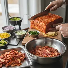 Start by preparing the dried chili peppers. Put on gloves to avoid skin irritation. Cut off the stems from the guajillo and ancho peppers, then slice them open and remove all the seeds and light veins. Heat a dry, heavy skillet (preferably cast iron) over medium heat. Place the pepper halves in the skillet and toast them for about 30-60 seconds on each side, until they become fragrant and slightly softened. Be careful not to burn them, as they will become bitter. Transfer the toasted peppers to a bowl and cover them completely with boiling water. Cover the bowl with a plate and let it sit for 20-30 minutes, until the peppers are very soft.
