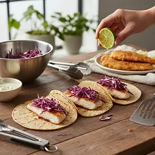 Serve the tacos immediately after assembling to maintain the crispiness of the fish. Place bowls of extra salsa, lime wedges, and optionally a sour cream or yogurt-based sauce with chipotle mayonnaise for a creamy and smoky touch alongside. They pair perfectly with a light Mexican beer or a refreshing margarita.