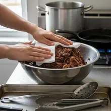 Start by preparing the marinade. Peel one large onion (about 200g) and cut it into large cubes. Peel the garlic. In a blender jar or a tall container (if using an immersion blender), place the chopped onion, peeled garlic cloves, chipotle peppers with a tablespoon of adobo sauce, pour in the lime juice, apple cider vinegar, and broth. Add cumin, oregano, ground cloves, 10g of salt (about 2 level teaspoons), and freshly ground pepper. Blend everything into a smooth, uniform paste. It should have an intense, smoky aroma.