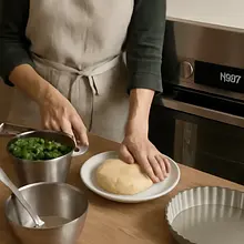 Blind baking: line the pastry with parchment paper and fill it with ceramic baking beads or dry peas/rice (the term: weight). Bake for 15 minutes at 190°C. Then carefully remove the weight and paper and bake for another 5 minutes until the bottom is dry and lightly golden.