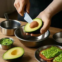 Avocado paste tartines are light, colorful, and elegant appetizers — perfect for New Year's Eve 2025. These small sandwiches on crispy baguette are topped with a creamy paste made from ripe avocado with a hint of lime and garlic, decorated with fresh cherry tomatoes and herbs. The dish combines the creamy texture of the paste with the crunchiness of the toasts, has a pleasant, slightly tangy taste, and an appetizing green-red appearance. Serve immediately after preparation as a snack with sparkling wine or cocktails; you can enhance the tartines with toppings (feta or smoked salmon) depending on your guests' preferences.