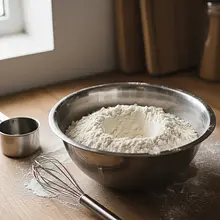 In a large bowl, place the all-purpose flour. Make a small well in the center, resembling a volcano crater. Crack two eggs into this well. Pour in half of the milk (150 ml) and add 3 pinches of salt. Take a whisk and start mixing the ingredients, moving from the center outwards. Gradually incorporate the flour from the edges of the 'crater' into the liquid ingredients. Once you achieve a thick, smooth batter without lumps, begin to add the remaining milk (150 ml) and sparkling water (200 ml), continuously mixing until the batter is uniform and runny. Finally, pour in 2 tablespoons of rapeseed oil (30g) and stir briefly once more. Let the batter rest for 15-20 minutes to allow the gluten in the flour to swell, making the pancakes more elastic.