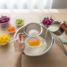 In a large bowl, sift the all-purpose flour. Make a well in the center, crack in 2 eggs and pour in half of the milk (250 ml). Using a whisk, start mixing the ingredients, incorporating the flour from the edges into the center. Mix vigorously until a thick, smooth batter without lumps forms. Then, while continuing to mix, slowly add the remaining milk (250 ml), sparkling water (100 ml), 2 tablespoons of oil (30g), and add 2 pinches of salt. Mix until you achieve a uniform, pourable batter.
