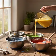 In a large bowl, place the sifted wheat flour. Sifting the flour through a sieve will make the dough fluffier and lump-free. Make a small well in the center of the flour, resembling a volcano crater. Crack 2 eggs into it, pour in the milk, sparkling water, and 2 tablespoons of rapeseed oil (about 30 ml). Add a pinch of salt. Start mixing the ingredients with a whisk, beginning from the center and gradually incorporating the flour from the edges. Mix vigorously until all the ingredients are combined and a smooth, pourable batter with the consistency of thin cream forms.