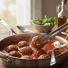 Carefully transfer all the browned meatballs back to the skillet, immersing them in the tomato sauce. Reduce the heat to low, cover the skillet with a lid, and cook everything for about 15-20 minutes. During this time, the meatballs will cook through, and the flavors will meld together.