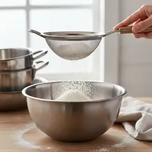 In one bowl, combine all-purpose flour and potato starch. Sift them together through a sieve at least twice. This step is extremely important as it aerates the flour, which contributes to the fluffiness of the sponge cake and prevents lumps from forming.