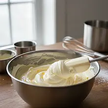 In a large, chilled bowl, place very cold 36% cream. Whip it with a mixer on high speed until it becomes thick and stiff, forming what is known as 'stiff peaks'. Be careful not to 'overwhip' it (whip for too long), as it will turn into butter.