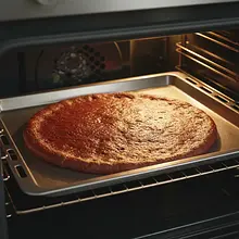 Place the tray with the prepared base and scraps in the preheated oven. Bake for about 5-7 minutes. The finished base will be slightly browned at the edges. After removing it from the oven, it will be soft but will harden as it cools. Carefully slide the paper with the base onto a cooling rack. Repeat the process with the remaining parts of the dough.