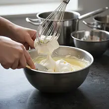 Add the whipped cream to the mascarpone mixture in three batches. Gently fold in each batch using a silicone spatula, making movements from bottom to top (folding technique). Mix only until the cream is uniform. The finished cream should be thick and fluffy.