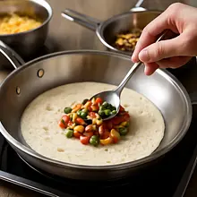 In Mexican cuisine, a tortilla refers to a flatbread, while in Spanish cuisine, 'tortilla' means a potato omelet. Our vegetable tortilla is an interpretation of popular wraps from fusion cuisine — easy to adapt to different flavor cultures.