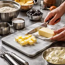 Prepare the ingredients: take the butter out of the fridge and cut it into small cubes (about 1 cm). Sift the flour into a large bowl, add the sugar and salt. Add the cold, diced butter. Using a knife or a pastry blender, work the butter into the flour until the mixture resembles coarse crumbs (the butter cubes should be visible). Crack in the egg and quickly knead the dough — you can use a wooden spoon and then finish by hand; knead briefly, just until the ingredients come together and the dough forms a cohesive ball. If the dough is too dry, add 1 tablespoon of cold water (15 ml). Shape into a flat disk, wrap in plastic wrap, and chill in the fridge for at least 45-60 minutes.