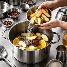 When the infusion starts to boil, reduce the heat to low and simmer for 20-25 minutes. After 10-15 minutes, gently press the fruit pieces with a wooden spoon to release their juices, but do not completely break them down — they should remain recognizable. After 20-25 minutes, taste the drink: the fruit should be soft, and the liquid aromatic and slightly sweet. If necessary, add more sugar or a teaspoon of honey, checking the flavor.