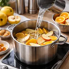 In a large pot (minimum capacity of 2 liters), pour in 1000 ml of water. Add the chopped quince, orange slices (except for those set aside for decoration), 2 cinnamon sticks (10 g), 6 g of star anise, 3 g of cloves, and 1 g of salt. Place the pot on the stove over medium heat and bring to a gentle boil. Once it starts boiling, reduce the heat to low and simmer very gently for 20-25 minutes, until the quince is soft (check by pressing with a fork - it should go in easily but not fall apart completely).