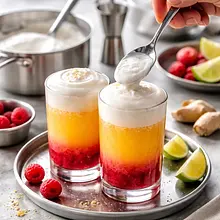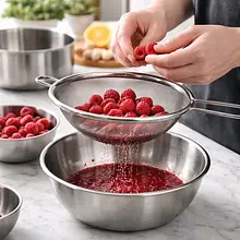 Prepare the raspberries: sift the fruits through a sieve over a bowl, remove the green tops and any impurities. In a medium pot (about 1–1.5 l), add the raspberries along with the sugar and pour in 80 ml of water. Place over medium heat and bring to a gentle boil. Reduce the heat and cook for 6–8 minutes, stirring with a wooden spoon every 30 seconds, until the fruits break down and the syrup thickens - it should coat the spoon and create a light "trail" when the spoon is drawn through.