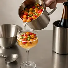 Just before serving, take the pitcher with the fruit out of the fridge. Gently pour the fruit mixture into a large bowl or a vessel with a wide opening for easier pouring. Slowly pour the chilled sparkling wine (1500 ml) into the pitcher with the fruit — pour close to the surface to minimize frothing. Stir very gently with a long spoon or stirrer for 10–15 seconds, just to combine the ingredients; vigorous stirring will lose the bubbles.