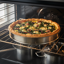 Upiecz tartę. Piecz tartę w temperaturze 180°C przez około 25-30 minut. Tarta jest gotowa, gdy jej brzegi są złociste, a nadzienie jest ścięte i lekko sprężyste przy dotknięciu palcem na środku. Środek nie powinien być płynny, ale może się delikatnie 'trząść' – dojdzie do siebie podczas stygnięcia.