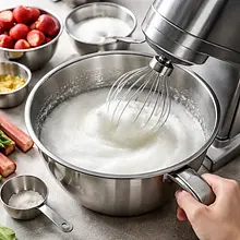 Beat the egg whites with a hand or stand mixer on medium speed for about 2–3 minutes until soft peaks form. Then gradually increase the speed and continue beating for another 1–2 minutes until the meringue is thick and glossy, holding stiff peaks. The meringue should hold its shape and not slide off the spoon.