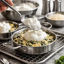 Prepare the egg whites: separate the egg whites from the yolks (the easiest way to do this is by transferring the yolk between the halves of the shell). Place the egg whites (from 2 eggs) in a clean, dry bowl. Add 1 g of salt (a pinch) — salt helps stabilize the foam.