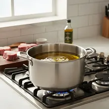 Gdy mięso jest już idealnie miękkie, delikatnie wyjmij je z sosu i przełóż na talerz, przykrywając folią, aby nie wyschło. Z sosu wyłów liście laurowe, ziele angielskie i gałązki tymianku. Aby uzyskać gładki, aksamitny sos, przelej go wraz z warzywami przez gęste sito, przecierając warzywa przez oczka za pomocą tylnej strony łyżki. Alternatywnie, dla gęstszego sosu, możesz zmiksować go blenderem ręcznym bezpośrednio w garnku.