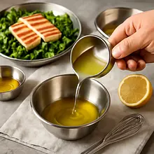 Prepare the dressing: in a small bowl, combine olive oil (45 g) and lemon juice (30 ml). Add dried oregano (2 g), salt (2 g), and freshly ground pepper (1 g). Whisk vigorously with a fork for about 20-30 seconds until the ingredients are combined and a homogeneous emulsion forms (small droplets of oil suspended in the juice). Taste and if necessary, add a little more lemon juice or a pinch of salt.