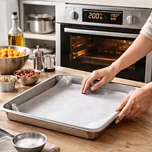 Preheat the oven to 200°C (top and bottom) or 190°C with fan. Line a large baking sheet with parchment paper. Peel the pumpkin with a vegetable peeler, cut it in half, remove the seeds with a spoon, and cut the flesh into even pieces about 2-3 cm on each side (smaller pieces caramelize faster). Transfer the pieces to the baking sheet in a single layer, drizzle with 15 g of oil (1 tablespoon) and lightly salt (about 1 g), and mix with your fingers to ensure each piece is coated in fat. Bake for 30–35 minutes until the pieces are soft in the middle (check with a fork — it should go in easily) and lightly browned at the edges.