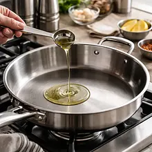 Heat a large, heavy skillet or cast-iron pot over medium-high heat. Pour in 1 tablespoon of oil (15 g). Dust the pieces of meat evenly with flour (just enough to lightly coat them) and shake off the excess flour. Sear the meat in batches (to avoid overcrowding the pan) for 3–4 minutes on each side until the pieces are well browned — they should have a dark brown, slightly crispy crust. After browning, remove the meat and set it aside on a plate.