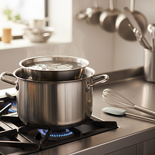Prepare a water bath (bain-marie). Pour a few centimeters of water into a pot and bring it to a boil. Reduce the heat so that the water is just gently 'bubbling'. Place a metal or glass bowl on top of the pot, ensuring it does not touch the surface of the water. In the bowl, add 3 egg yolks, 1 tablespoon of lemon juice, and 1 tablespoon of cold water. Start whisking vigorously with a balloon whisk.