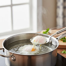 Using a spoon or whisk, create a whirlpool in the water. Gently pour the egg from the bowl into the center of the whirlpool from a very low height. The centrifugal force of the whirlpool will help the white wrap around the yolk. Cook for exactly 3 minutes for a runny yolk and set white. If you prefer a firmer yolk, cook for 4 minutes.