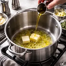 Classic French onion soup in a romantic version — intensely caramelized onions bathed in aromatic broth, seasoned with white wine and herbs, served with crispy croutons and melted gruyère cheese. The dish has a sweet-buttery note from the long-cooked onions, depth of flavor from the wine and broth, and a creamy, stretchy layer of cheese with a golden, gratinated crust. Perfect as an exquisite, warming dish for Valentine's Day — serve in heatproof ramekins, by candlelight. It looks impressive (bubbles of cheese, golden color of the croutons), and the aroma of onions and wine will create a cozy dinner atmosphere.