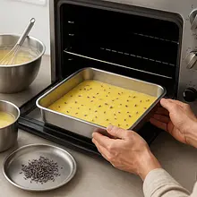 To wyrafinowany deser, który stanowi idealne połączenie kruchego, maślanego spodu z intensywnie cytrynowym, jedwabistym nadzieniem. Inspiracją są klasyczne amerykańskie 'Lemon Bars', jednak ta wersja została wzbogacona o subtelną, kwiatową nutę jadalnej lawendy, która dodaje całości niezwykłej elegancji i głębi smaku. Spód jest delikatny i rozpływający się w ustach, stanowiąc idealny kontrast dla gładkiego, słodko-kwaśnego kremu cytrynowego na wierzchu. Wizualnie ciasto zachwyca intensywnie żółtym kolorem nadzienia, odcinającym się od złocistego spodu, a całość oprószona jest delikatną warstwą cukru pudru, przypominającą szron. Deser ten jest idealny na specjalne okazje, przyjęcia w ogrodzie czy jako elegancki dodatek do popołudniowej herbaty. Podawany na zimno, orzeźwia i zachwyca balansem smaków.