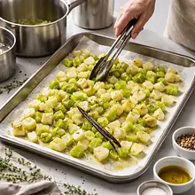 Rozgrzej piekarnik do 200°C z funkcją termoobiegu (lub 220°C góra-dół). Przygotuj dużą blachę do pieczenia i wyłóż ją papierem do pieczenia, co zapobiegnie przywieraniu warzyw i ułatwi sprzątanie.