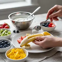 Podawaj łódeczki natychmiast po przygotowaniu, aby banan nie zdążył ściemnieć, a jogurt pozostał chłodny i gęsty. Możesz ułożyć je na dużym, kolorowym talerzu, tworząc wesołą kompozycję. Każde dziecko może dostać swoją własną, spersonalizowaną łódeczkę.