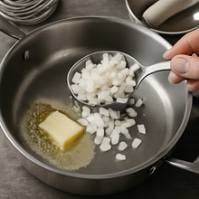 W szerokim garnku lub głębokiej patelni rozgrzej 20 g masła na średnim ogniu. Wrzuć pokrojoną cebulę (150 g) i smaż 4–5 minut, mieszając, aż cebula stanie się szklista i miękka (powinna być półprzezroczysta, nie brązowa). Dodaj startą marchew (100 g) i smaż kolejne 2 minuty. Dodaj kapustę kiszoną (800 g). Jeśli kapusta jest bardzo kwaśna, wcześniej ją przepłucz i odciśnij. Wlej bulion lub wodę (300 ml), wrzuć 1 liść laurowy i 3 kulki ziela angielskiego. Jeśli używasz suszonych śliwek (50 g), dodaj je teraz, aby napęczniały i oddały smak. Przykryj i duś na małym ogniu przez 20–25 minut, co jakiś czas mieszając i dociskając drewnianą łyżką — kapusta powinna stać się miękka, aromatyczna i nieco szklista. Na 5 minut przed końcem spróbuj i dopraw solą (ostrożnie) oraz świeżo zmielonym pieprzem. Jeśli chcesz dodać majeranek (opcjonalnie), dodaj go na koniec duszenia.