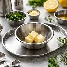 Przygotuj ziołowe masło: w małej miseczce umieść masło (20 g) i zostaw je na chwilę w cieple, aby stało się miękkie; jeśli jest zimne, możesz je delikatnie roztopić w mikrofalówce przez 5-8 sekund. Dodaj oliwę z oliwek (30 g), drobno posiekany czosnek (10 g), drobno posiekaną natkę pietruszki (15 g) oraz posiekany tymianek (5 g). Zetrzyj skórkę z cytryny (ok. 1/2 łyżeczki skórki) nad miską, a następnie wyciśnij sok z połowy cytryny (ok. 15-20 g soku). Wymieszaj widelcem lub małą łyżką do połączenia składników — powinna powstać gęsta, lekko płynna emulsja z widocznymi kawałkami ziół.