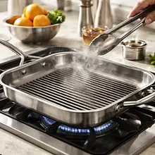 Rozgrzej grill (lub patelnię grillową) do średnio‑wysokiej temperatury — ruszt powinien być gorący, ale nie dymiący. Jeśli używasz grilla węglowego, poczekaj aż węgle pokryją się szarym popiołem i mają stabilną temperaturę. Połóż porcje łososia na ruszcie. Grilluj około 3–4 minut z jednej strony (nie ruszaj ryby), aż boki zmienią kolor i mięso będzie od spodu lekko przyrumienione. Obróć delikatnie łopatką i grilluj kolejne 2–3 minuty. W ostatniej minucie pędzluj glazurą pomarańczowo‑miodową po wierzchu każdej porcji i pozwól jej lekko się skarmelizować. Łosoś jest gotowy, gdy mięso jest różowe i soczyste w środku, ale nie surowe — przy dotknięciu powinien lekko się rozpadać.