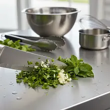 Bardzo drobno posiekaj zioła oraz obrane ząbki czosnku. Użyj ostrego noża szefa kuchni. Najpierw posiekaj wszystko z grubsza, a następnie zbierz w kopczyk i siekaj dalej, wykonując kołyszący ruch nożem, aż uzyskasz bardzo drobną, ale wciąż widoczną teksturę. Alternatywnie, możesz umieścić wszystkie składniki sosu (zioła, czosnek, oliwę, ocet, chili) w malakserze lub blenderze i pulsacyjnie zmiksować. Uważaj jednak, aby nie zmiksować na gładką pastę – sos powinien mieć wyczuwalne kawałki ziół.