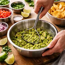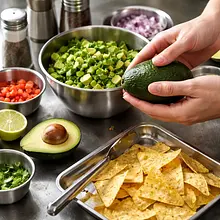 Jeśli guacamole wydaje się zbyt gęste, dodaj dodatkową łyżeczkę soku z limonki lub kilka kropel wody i wymieszaj. Konsystencja powinna być kremowa z niewielkimi kawałkami — nie zbyt płynna. Po doprawieniu odstaw na 5-10 minut, by smaki się przegryzły.
