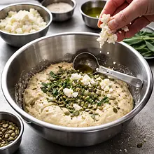 Zacznij od przygotowania rozczynu drożdżowego. W małej miseczce lub kubku umieść pokruszone świeże drożdże. Dodaj łyżeczkę cukru. Zalej całość około 100 ml lekko ciepłej wody (z puli 300 ml). Woda musi być przyjemna w dotyku jak kąpiel dla dziecka, nie gorąca! Wymieszaj wszystko dokładnie widelcem, aż drożdże i cukier całkowicie się rozpuszczą. Odstaw miseczkę w ciepłe miejsce na około 10-15 minut. Po tym czasie na powierzchni powinna pojawić się gęsta, beżowa piana, co jest znakiem, że drożdże są aktywne i gotowe do pracy.